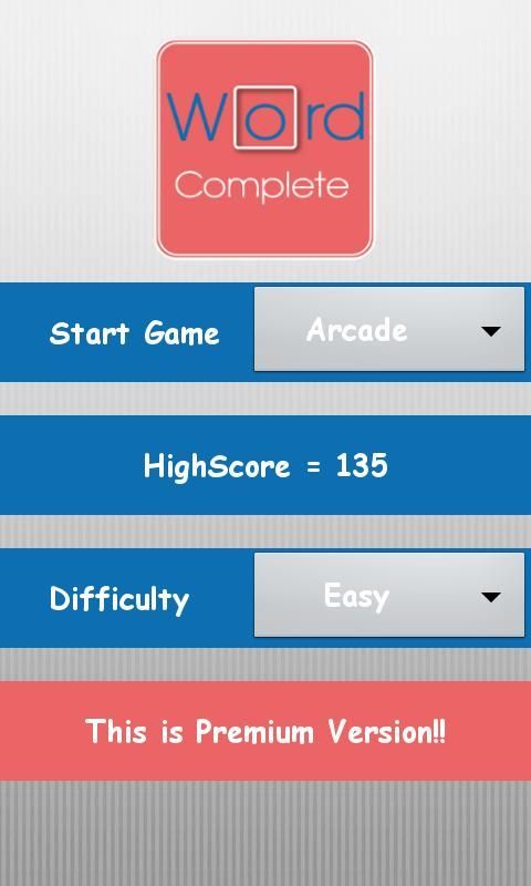 Firman lengkap terdiri dari dua mode kesulitan - Mudah dan Hard. Dalam mode ini baik satu atau dua huruf akan hilang. Hard mode tampaknya sulit, bermain mode ini untuk mendapatkan skor yang lebih tinggi (scoring berbeda di kedua mode).