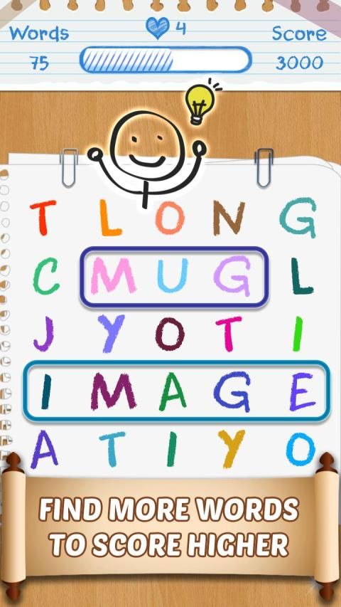 Correct swipe the letters horizontally, vertically, diagonally, forwards or backwards to form a specific hidden word. Find as many words as possible to unlock levels.