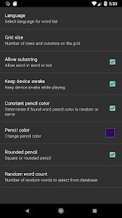 Word Connect Pro gives option to allow Substring. It also gives an option to keep device awake