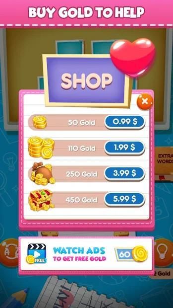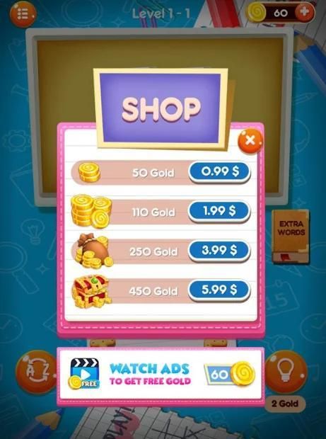 - Anda dapat menggunakan koin untuk membeli petunjuk untuk membantu memecahkan kata-kata.