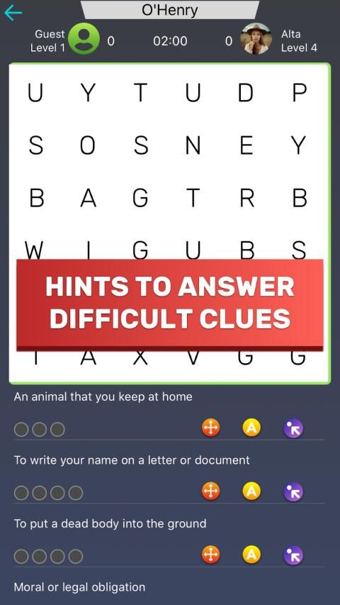 Word Search Clash is a free infinite word finder puzzle for everyone. A hybrid between crossword and word finder, you have to use crossword clues to find words in a word search grid. The game starts easy and get harder as you progress. A great way to learn new words and improve spelling and cognitive skills.