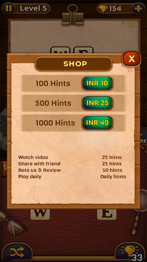 - Kesulitan datang dengan permainan kata? Anda dapat menggunakan petunjuk untuk membantu mendinjak level.