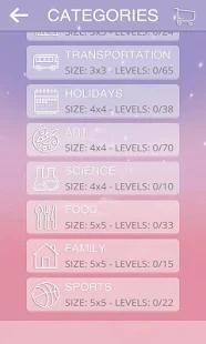 ◉ Words: The traditional playmode. Just find all the words from the list in the shortest time possible.