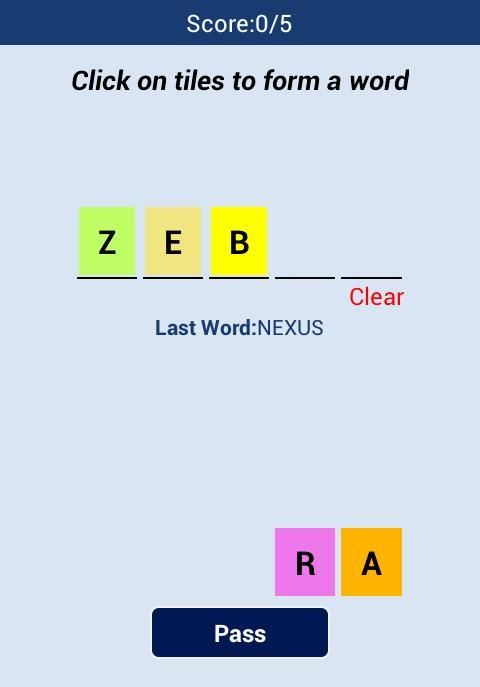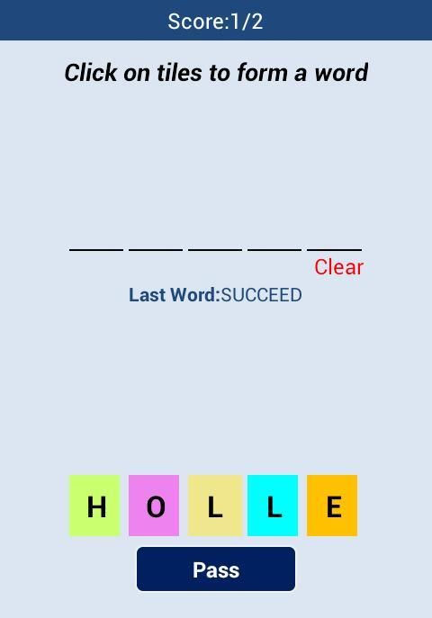 Sebuah permainan kata yang menarik untuk anak-anak dan orang dewasa. Bentuk kata dari huruf campur aduk dan mengenal tentang kata-kata baru. Menyediakan banyak bersenang-senang bersama dengan belajar.