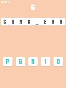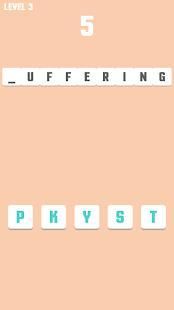 Each level has a word but missing one letter; you have to find the right one to fix it.