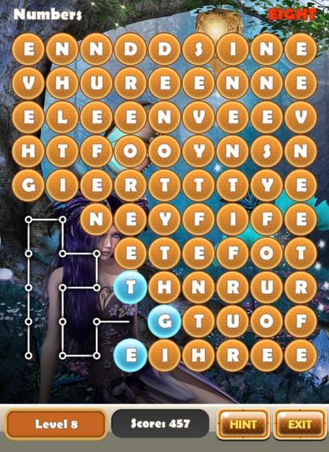 Menemukan jalan melalui surat dengan menciptakan kata-kata dari tema yang diberikan. Membuka gambar latar belakang 3D yang indah karena Anda maju.