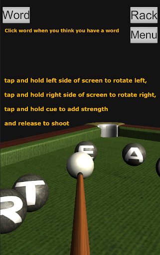 Hold cue and release to shot the balls into the pockets to create words.