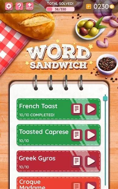 Collect coins to get hints, share to ask for help from friends, or skip to the next sandwich. For every 10 sandwiches you get right, you advance to the next foodie level and unlock a delicious new recipe! Build your cookbook with mouthwatering recipes for vegetarian and meat meals, special breads, and desserts!