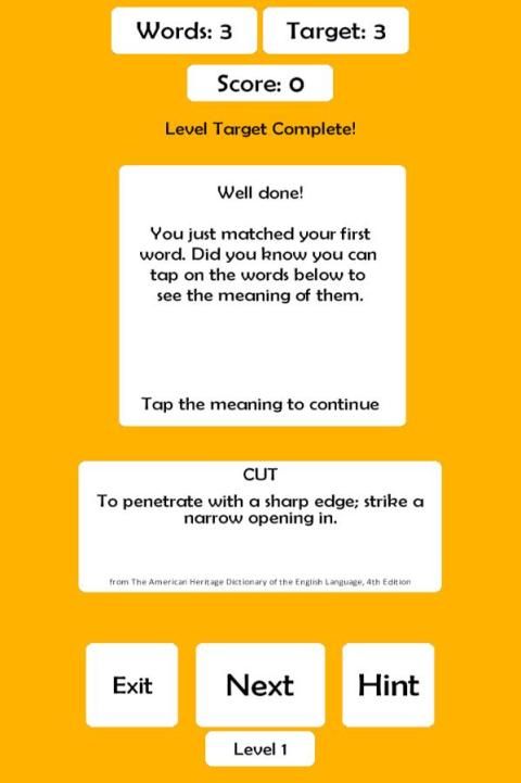 - Ketuk kata yang cocok untuk menunjukkan arti kamus - belajar sambil bermain!