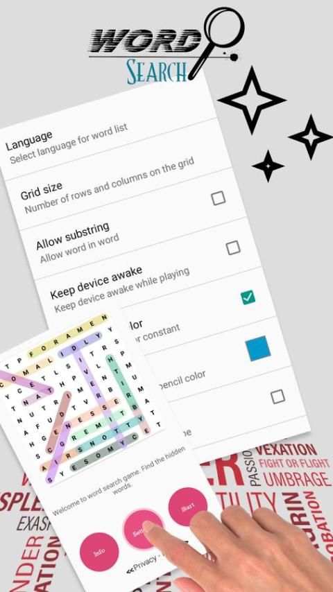 Ini adalah pencarian kata sederhana dan lite. kata pencarian dikenal sebagai kata menemukan atau kata cari. Ini adalah permainan indah Anda dapat bermain saat Anda sedang menunggu taksi atau mengambil istirahat.