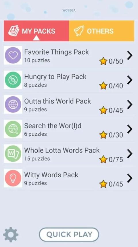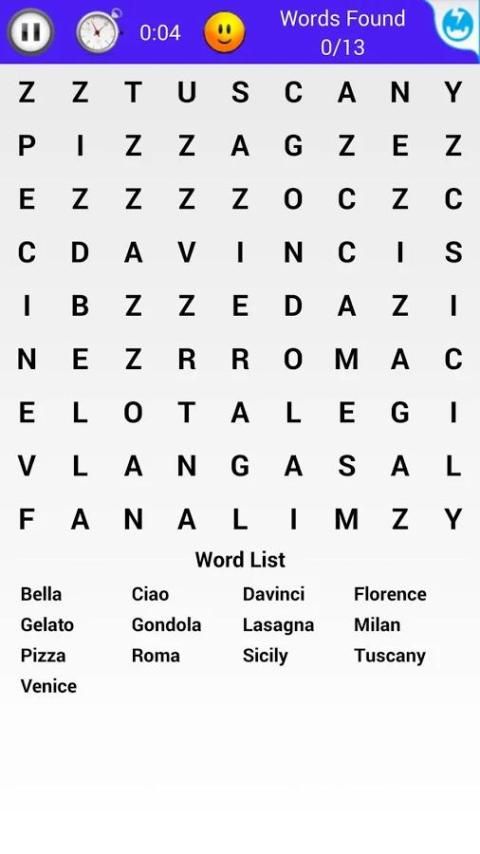 • Permainan dipisahkan ke dalam kategori, sehingga memungkinkan Anda untuk memecahkan kata pencarian tema favorit Anda;