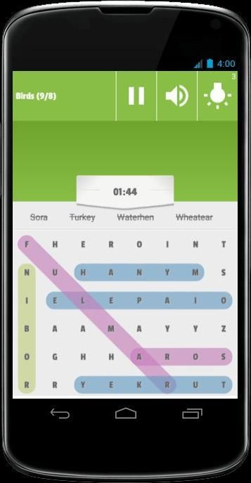 Word Search 2017 permainan didukung semua teka-teki, Teka-teki akan secara otomatis dihasilkan oleh aplikasi untuk tak berujung Fun Anda. Anda dapat memilih kesulitan Bermain game seperti mode Simple, Normal Mode dan mode Hard. Word Search 2017 adalah permainan sederhana untuk mencari kata apapun .. Lengkapi kata sekarang ...