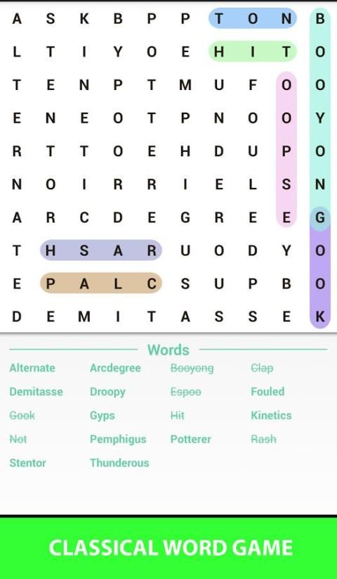 Meningkatkan kosakata Anda dan bersenang-senang melakukannya dengan game ini pencarian kata adiktif.