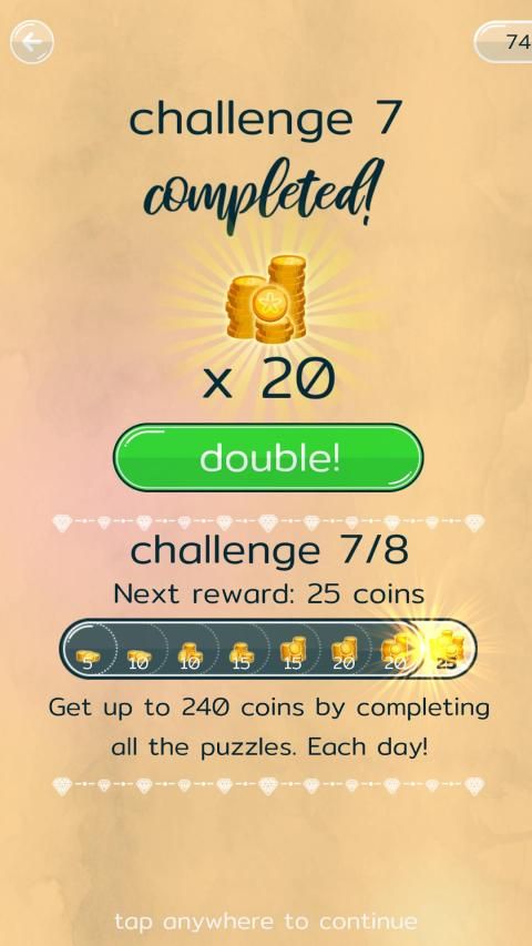 Datang dan mainkan setiap hari, tingkatkan IQ Anda, dan ✨ bersinar lebih dari orang lain ✨, seperti berlian ! Dapatkan imbalan setiap jam dan selesaikan teka-teki pencari kata per jam, latih pikiran Anda dan percepat otak Anda terus-menerus.