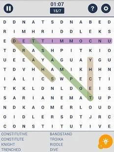 Anda dapat mencari nama-nama hewan domestik, aktor terkenal, anjing dan banyak lagi. Anda dapat dengan mudah menggesek huruf untuk membentuk kata yang tersembunyi tertentu. Kata-kata yang tersembunyi secara vertikal, horizontal dan diagonal. dengan Word pencarian - permainan kata cannect puzzle Anda tidak pernah bosan!