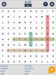 Attach the letters in the words that are written down at the bottom of the word search puzzle game screen.