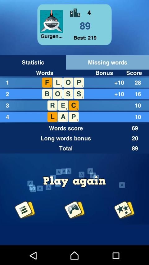 In this mode, you have to earn as many points as you can within 2 minutes. Make longer words to earn bonus points. To get even more points, use the DL (double letter) and DW (double word) in your words.