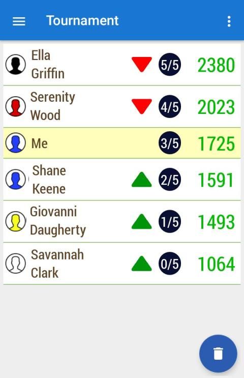 ★ Mainkan Turnamen melawan 5 pemain tingkat keterampilan, dari 1 hingga 5.