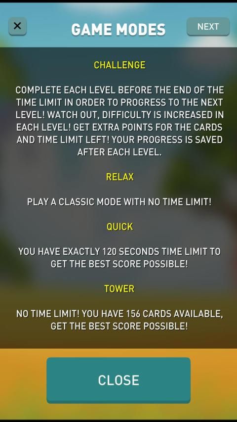 * CHALLENGE- Complete each level before the end of the time limit in order to progress to the next level! Watch out, difficulty is increased in each level! Get extra points for the cards and time limit left! Your progress is saved after each level.