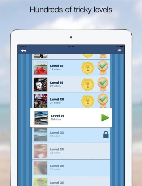 This game is for a true word genius! Each picture has three words associated with it. We give you all the letters needed to find the word, and then it's up to you to find the correct solution. Drag the letters with your finger.