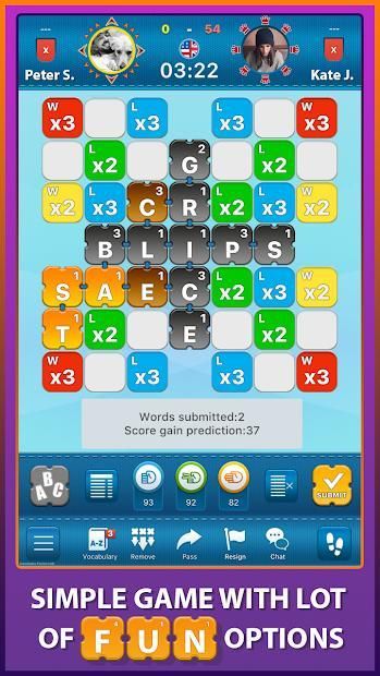 Vocabulary of English word games includes more than 300.000 words! The main thing about the game – it is easy add new letters to the game board, quickly find and submit new words, but you have to choose which 7 of them to submit to get more score points at the end of your turn. Each turn (move) is a timed word search process, and time for making moves depends on game mode you play. Now, as you know it, the game looks like more challenging word search activity. Isn’t it? ;-)