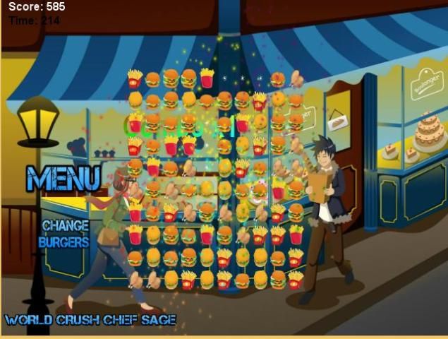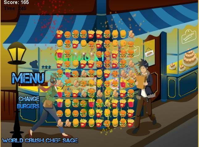 # Match three or more tasty world chef burgers to complete the World crushing saga!