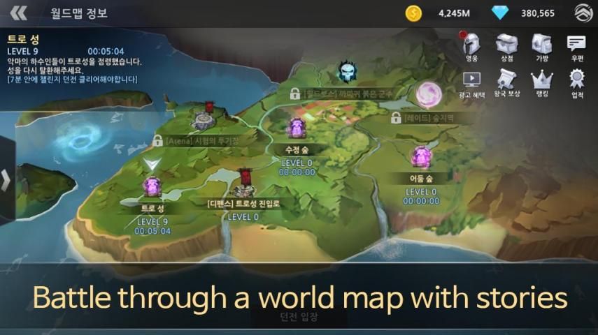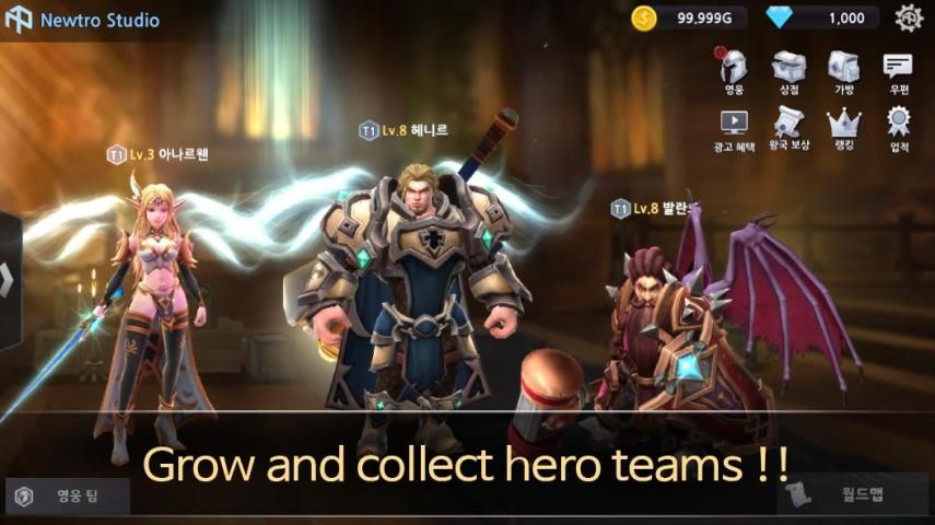 Enjoy hero growth, competition, and fun through Challenge Dungeons, Defense Dungeons, Field Bosses, Raids, and Arenas.