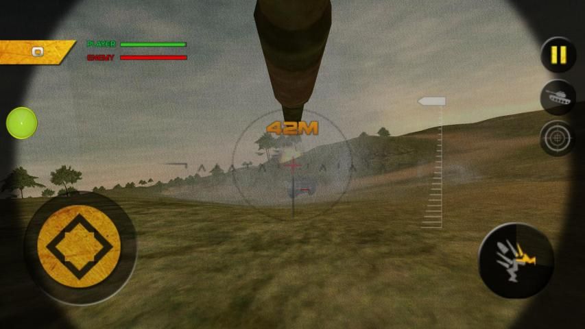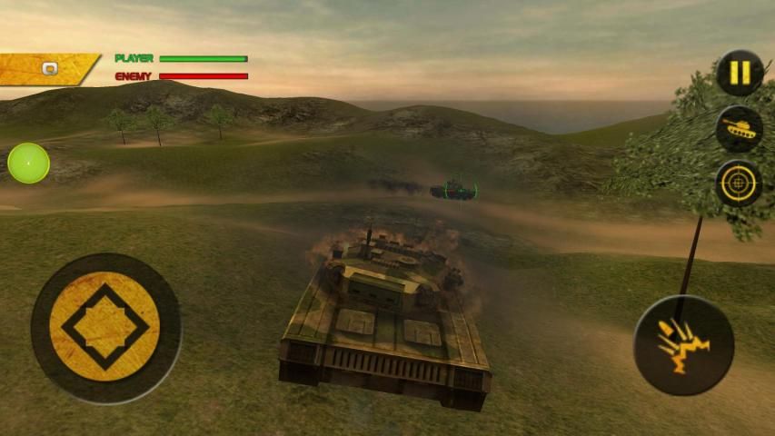 - Tombol samping kiri joystick pada layar untuk gerakan tangki