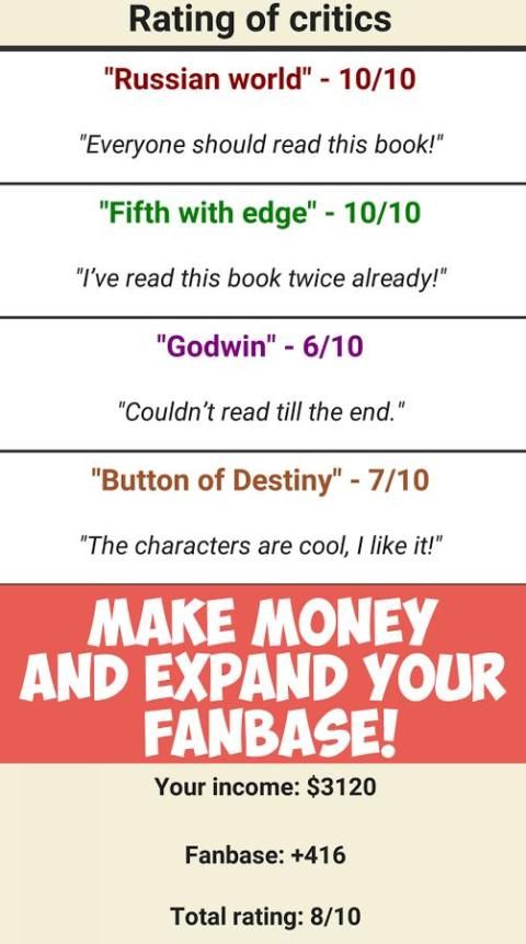 -Writing buku impian Anda sendiri: memilih genre, menulis dan bentuk. Setiap buku akan dinilai oleh para kritikus atas, dari yang peringkat pendapatan Anda tergantung.