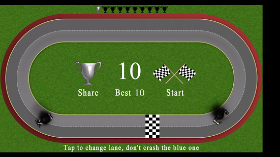 Avoid the bule raceing car and keep running in the circle.