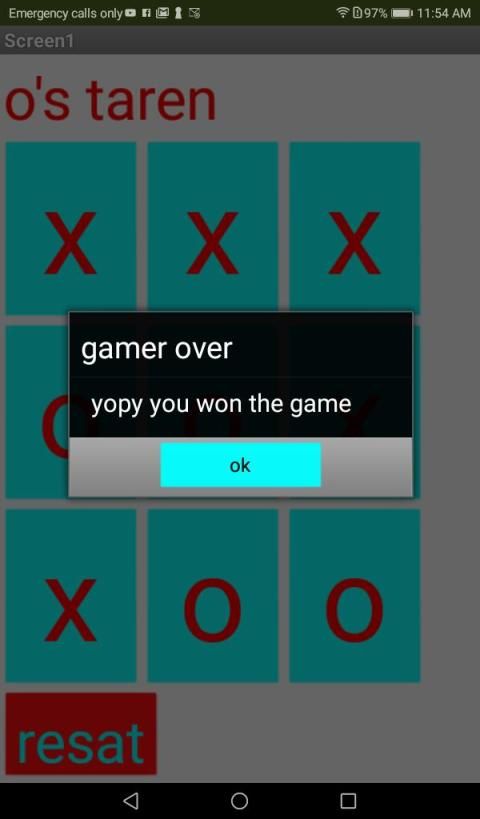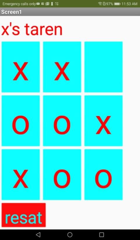 bermain game duple. Anda ingin melanjutkan baris yang terdiri dari tiga digit secara vertikal atau horizontal atau garis melengkung untuk memenangkan permainan. satu orang bermain dengan (x) yang lain bermain dengan (o) jika tidak ada yang menyelesaikan satu baris (tiga (x) atau tiga (o) membentuk satu baris) dengan dasi maka mainkan permainan lain. Anda dapat menggunakan tombol atur ulang kapan saja untuk memulai ulang gim Anda.