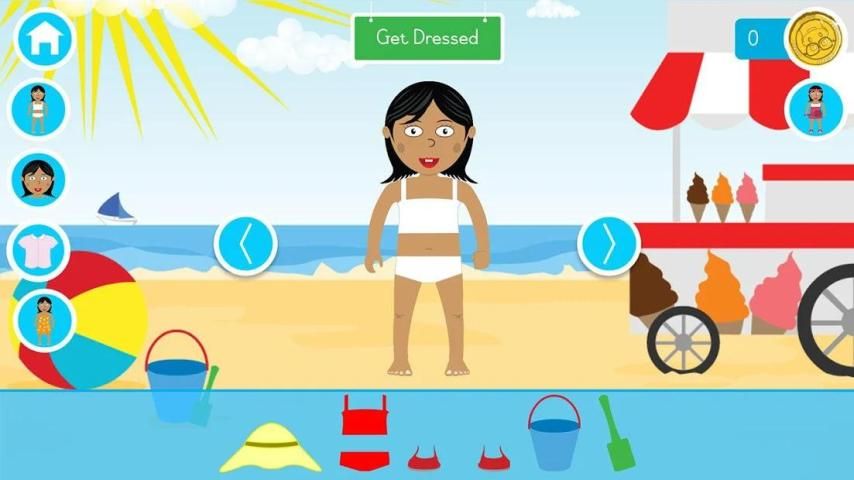 English Wardrobe is an English educational app for young children that teaches them the names (and pronunciation) for different body parts, clothing and weather.