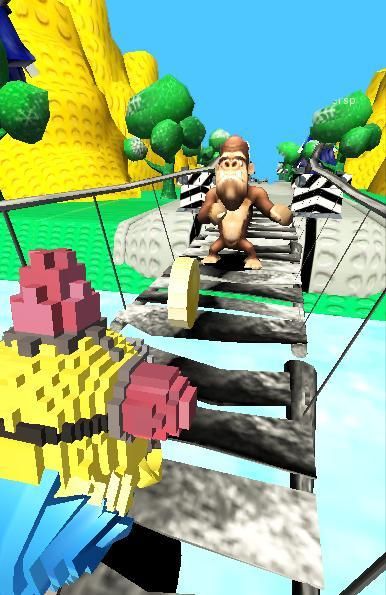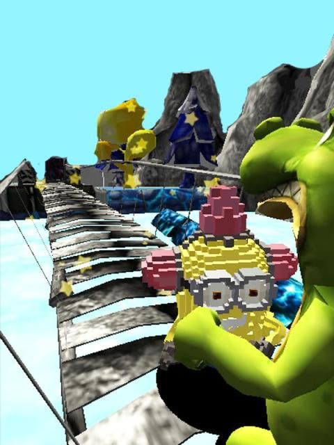 watch out for the big gorillas that are about to eat you, immediately avoid the big gorillas, minion and be careful with the train that suddenly appears in front of you, immediately avoid it.