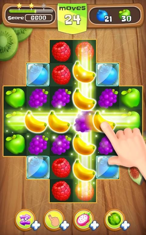• Pertandingan 4 buah lezat untuk mendapatkan item bergaris dengan warna yang sama untuk membersihkan seluruh baris item.
