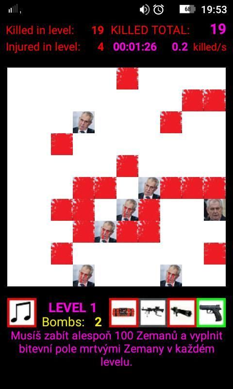 Hra obsahuje 10 úrovní. Pro postup do nové úrovně je nutno zničit alespoň 100 Zemanů a zaplnit bitevní pole zničenými Zemany.