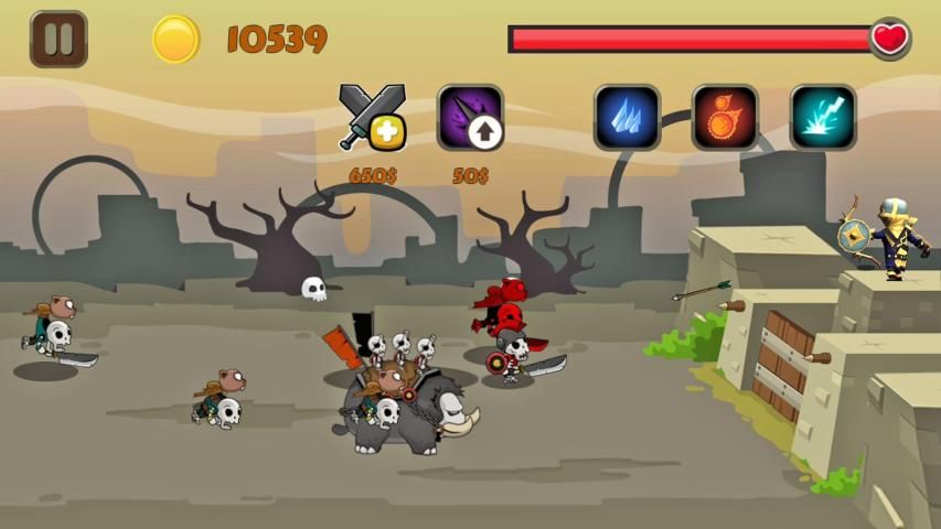 Dalam pertempuran, Anda dapat membeli lebih banyak pemanah (juga berdiri di atas menara) untuk pertempuran dan menembak lebih kuat. Menggunakan koin untuk membeli pemanah baru di atas menara. Anda dapat memutuskan untuk meng-upgrade pemanah atau membeli pemanah baru, tergantung pada strategi terbaik Anda.