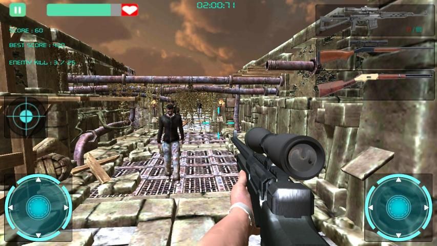 Dalam permainan ini Anda adalah seorang prajurit di ditinggalkan Temple lama dan Anda harus berjuang untuk bertahan hidup melalui misi berbagai tingkat permainan dan Anda harus mengamankan dari Zombies invasi, Anda harus menyelesaikan setiap misi dalam waktu tertentu.
