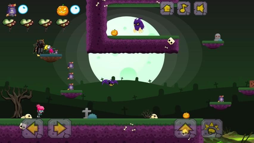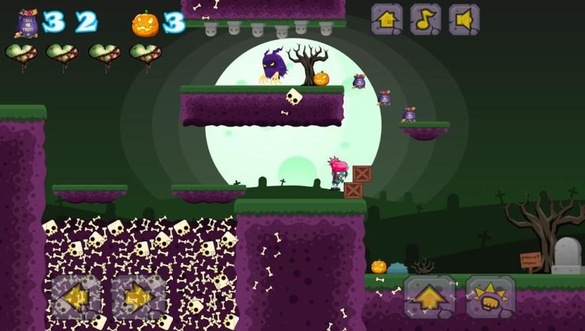 Permen telah dicuri dari semua anak-anak di ZombieLand dan Anda harus mengumpulkan semua permen yang jatuh dan mengambil 10 labu untuk Menyelamatkan Halloween