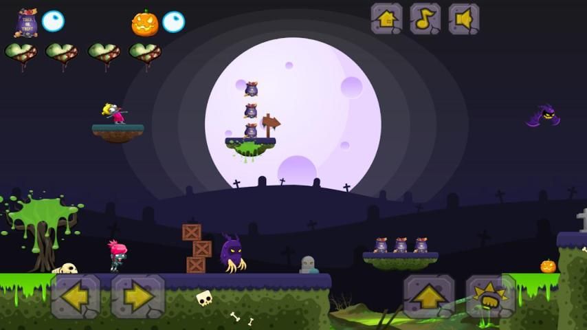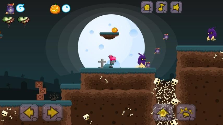 Candy has been stolen from all the kids in ZombieLand and you have to collect all the fallen candy-bags and retrieve 10 pumpkins to Save Halloween