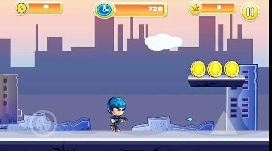 For playing this game, you can use touch in screen to jump and shoot.