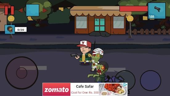 - Kill zombies with 10 weapons : gun , grenade and melee