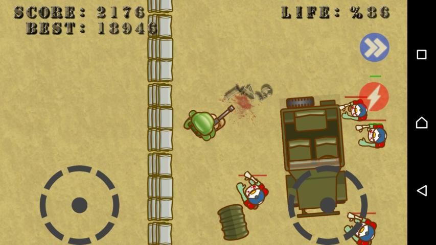 - Lembut mengingatkan: Sembunyikan belakang jip atau barel untuk menunda zombie.