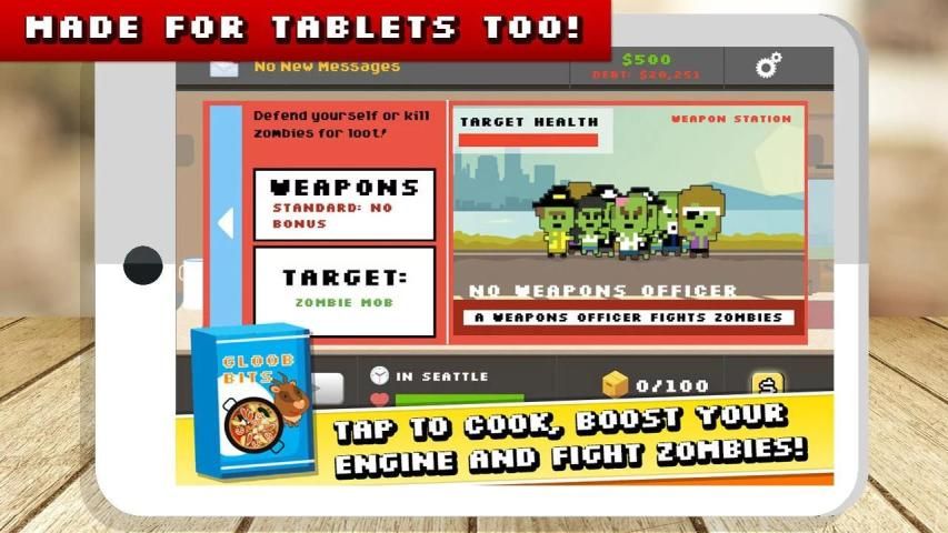 Bagian clicker / permainan menganggur! Menyewa awak kapal untuk memasak, menjarah zombie, dan meningkatkan mesin Anda.