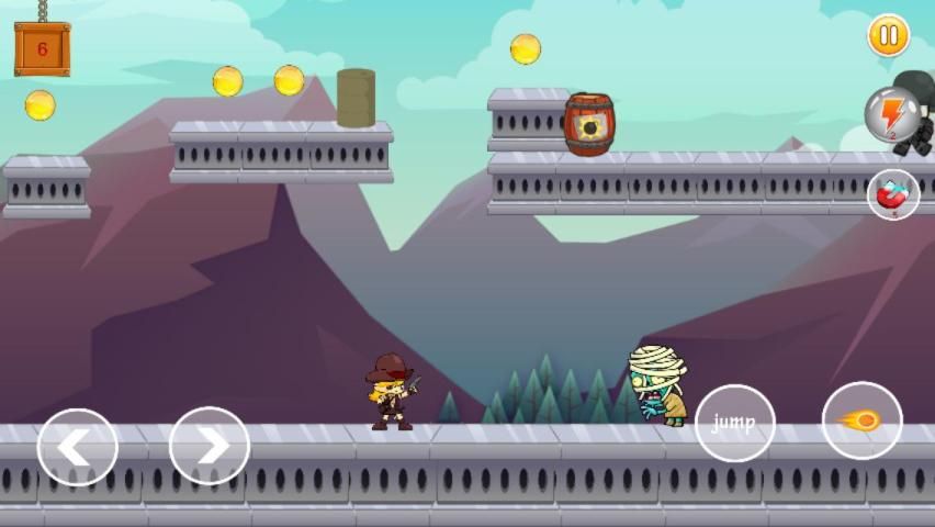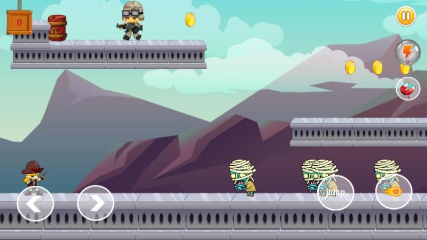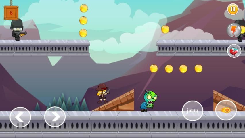 In this zombie-filled game world you need to eliminate all kinds of zombies and get an escape. Little warrior has a sword and gun to kill the zombies and other enemies Complete various challenging tasks, you can unlock new weapons after making more scores. you can also buy some equipment's etc. Collection of more coins and diamonds during run will create more fun. Be careful not to be hit by anything otherwise you will loss the life of your warrior man. Keep your fingers on the keys vigilantly to save yourself from soldiers and zombies. Shoot them to ensure you survive in this interesting play. left and right buttons allow you to quickly turn around to move orderly. Try to avoid meeting zombies and don’t forget to collect coins when you move ahead.
