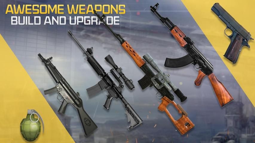 - Gun war with multiple weapons like pistol, shootgun,ak47 and sniper
