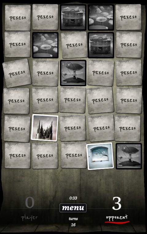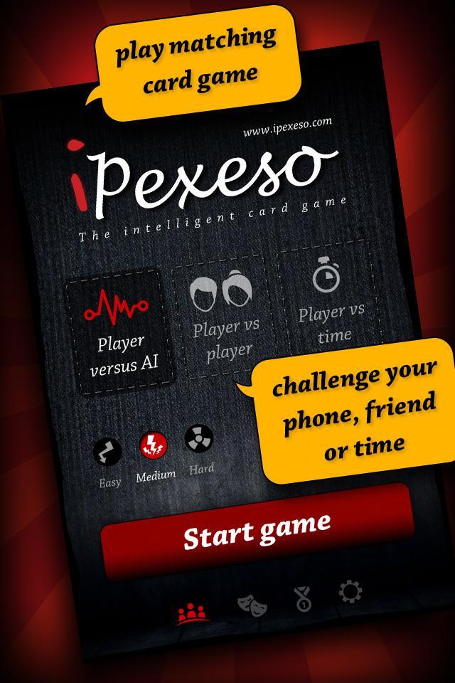 What means "iPexeso"?. Pexeso is czech name for Concentration game (worldwide known also as Memory or Pairs). And "i" is for intellect because it's much better when you can play against AI and not only against yourself :)