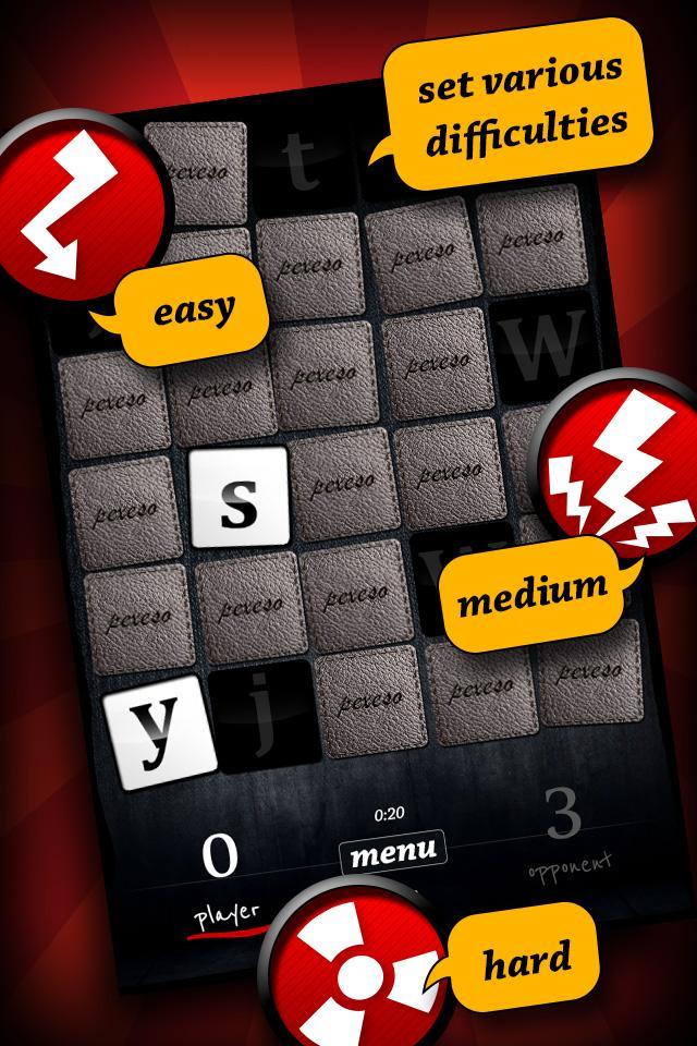 - Player versus AI mode - challenge your mobile or tablet in 3 difficulty modes (easy for kids, medium and hard for adults)