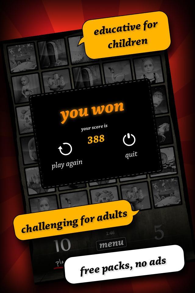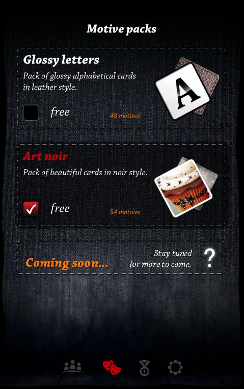 - Beautiful “art noir” motive pack with 54 memory game cards