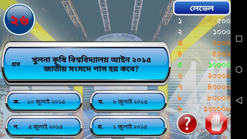 Here the BCS (Bangladesh Civil Service) exam question also added. The BCS examine can also play the game for their preliminary exam. Learn the BCS questions with the challenge. The previous BCS preliminary exam questions added to enrich the game for all levels of young generation. Young generations can play the games with fun and they can play the game at any place. If you are in the traffic jam the time is lost. In that time if you play the game the BCS questions and also the general knowledge will increase the knowledge.