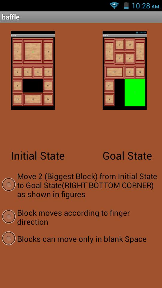 Baffle is puzzle game problem to move block 2 from initial state to goal state.